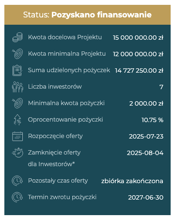 Do transakcji doszło na przełomie lipca i sierpnia 2025 roku za pośrednictwem platformy crowdfundingowej CRE.